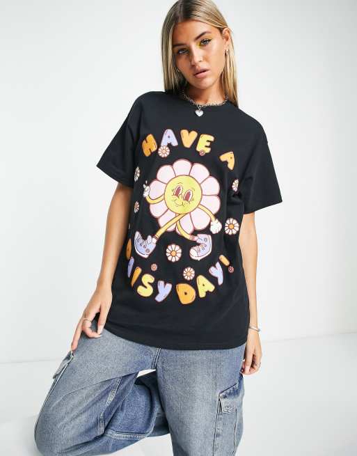 Heartbreak – Oversize-T-Shirt in Schwarz mit Daisy Day Grafik