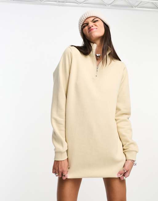 Heartbreak – Pullover-Minikleid in Sand mit Viertelreißverschluss