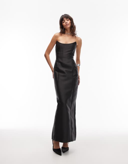 Heiress Beverly Hills – Maxikleid aus strukturiertem Satin in Schwarz mit Korsett-Schnürdetail am Rücken