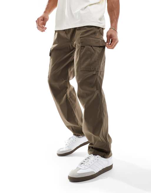Selected Homme – Fallschirm-Jogginghose aus Baumwolle-Nylon in Braun mit lockerem Schnitt und Cargotaschen