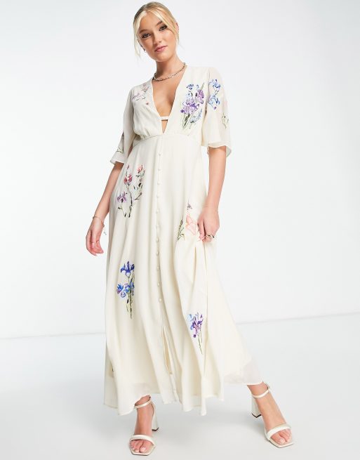 Hope & Ivy – Carmen – Besticktes Midikleid in Cremeweiß
