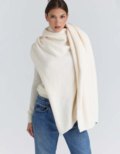 House of CB – Nara – Strukturierter Oversize-Schal aus Wolle in Elfenbein