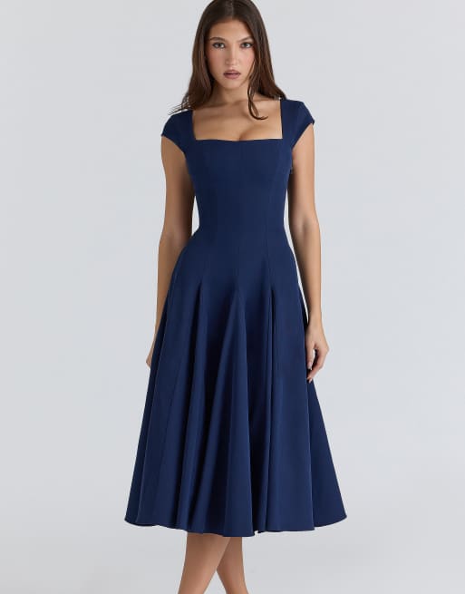 House of CB – Raisa – Twill-Midikleid in Marineblau mit Rückenschnürung
