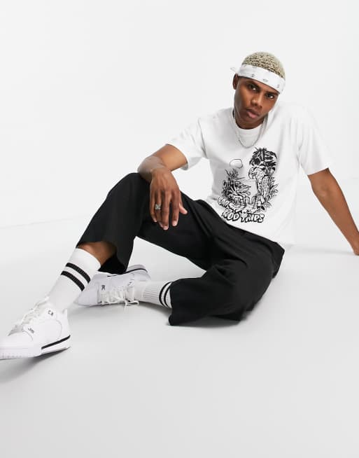 HUF – T-Shirt mit Urlaubsprint und UV-Schutz in Weiß