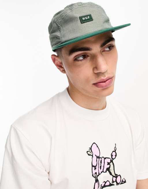 HUF – Valley – Grün und Weiß karierte Kappe in 5-Panel-Design mit Logo
