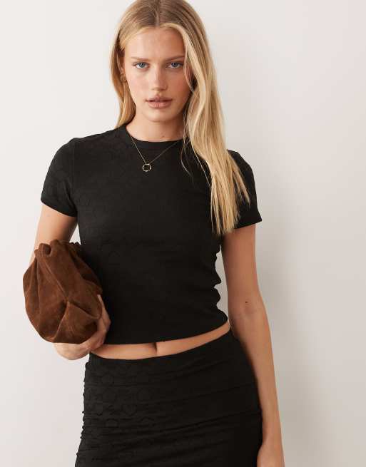 HUGO Blue – Dappless – Cropped-Oberteil in Schwarz mit Logoprint, Kombiteil