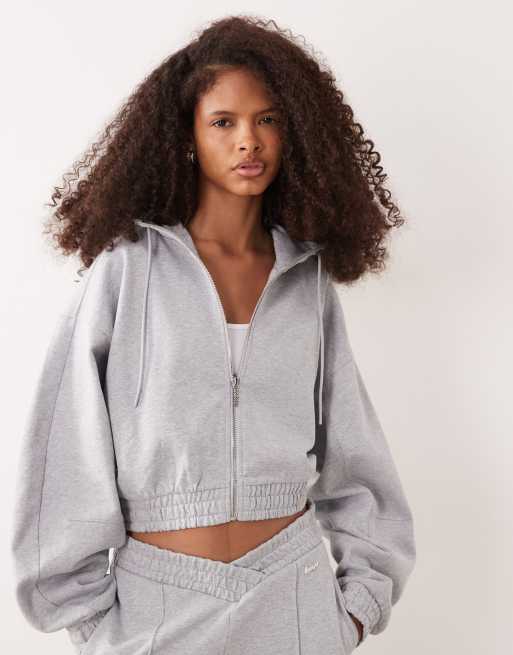 HUGO Blue – Dolpie – Cropped Kapuzenjacke in Grau, Kombiteil