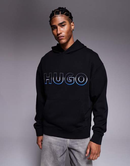 HUGO Blue – Nogudi – Kapuzenpullover in Schwarz mit Logoprint mit Farbverlauf