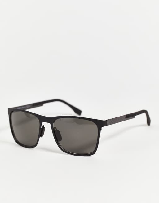 Hugo Boss – Klassische, eckige Sonnenbrille in Mattschwarz