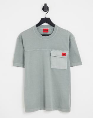HUGO – Dinsky – T-Shirt in Grün mit Brusttasche