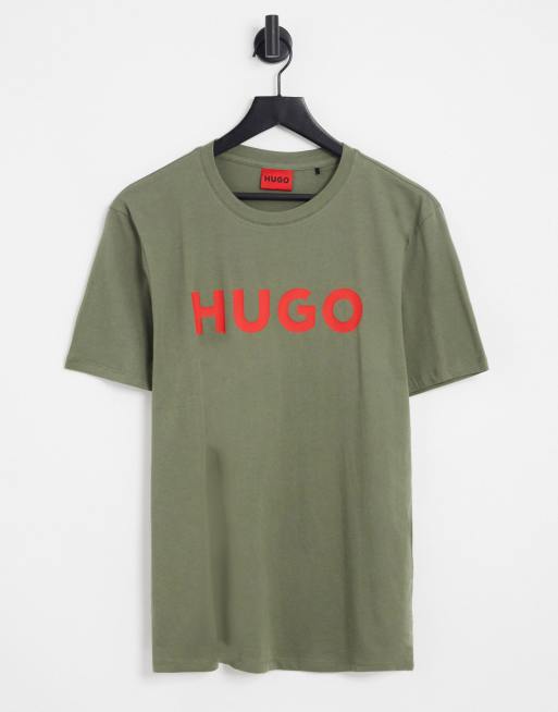 HUGO – Dulivio – T-Shirt in Khaki mit großem Logo