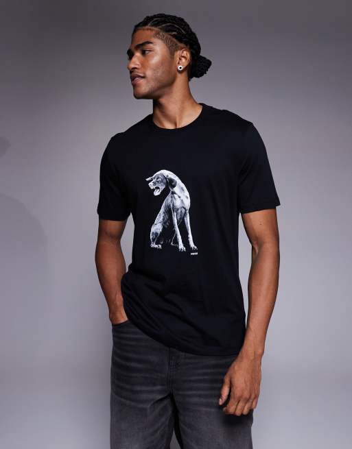 HUGO RED – Didug – T-Shirt in Schwarz mit Hundelogo