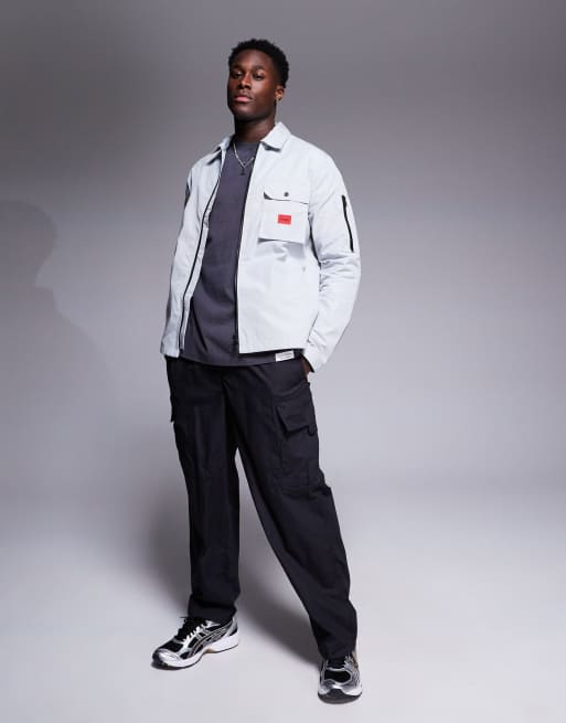 HUGO Red – Emmond – Oversize-Hemdjacke in Grau