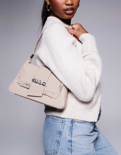 HUGO Red – Mel – Umhängetasche in Beige mit Logo
