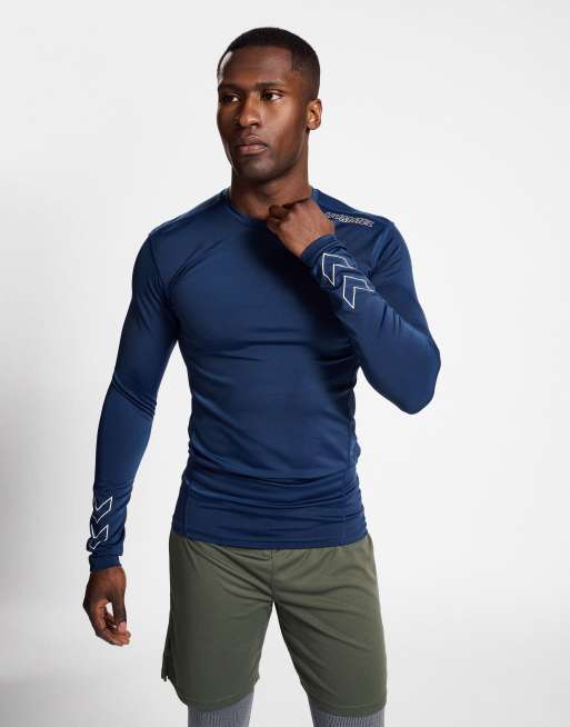Hummel – Langärmliges, figurbetontes Jersey-Shirt in Marineblau