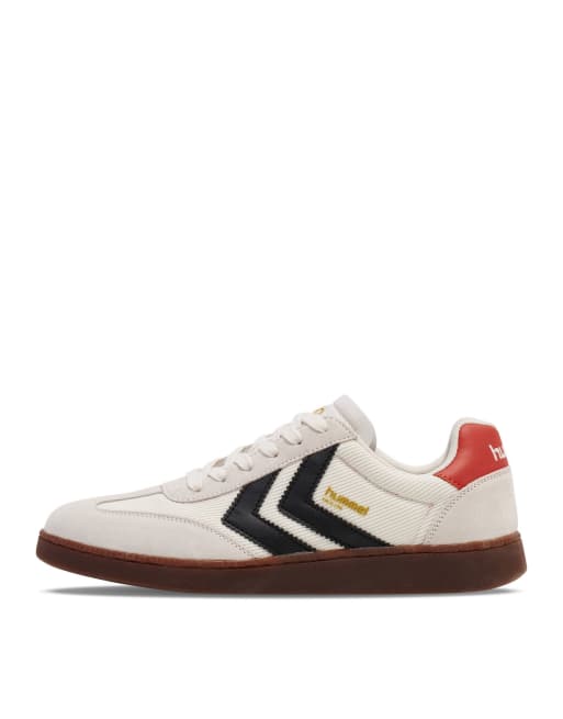 hummel – Sneaker in Weiß und Rot mit niedrigem Schaft