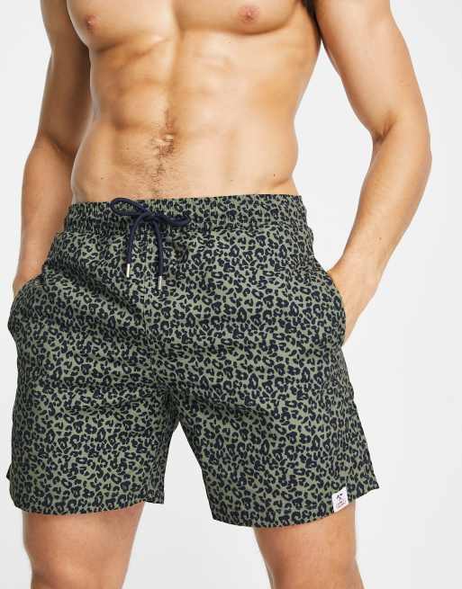 Hunky Trunks – Boardshorts in Khaki mit Leopardenmuster