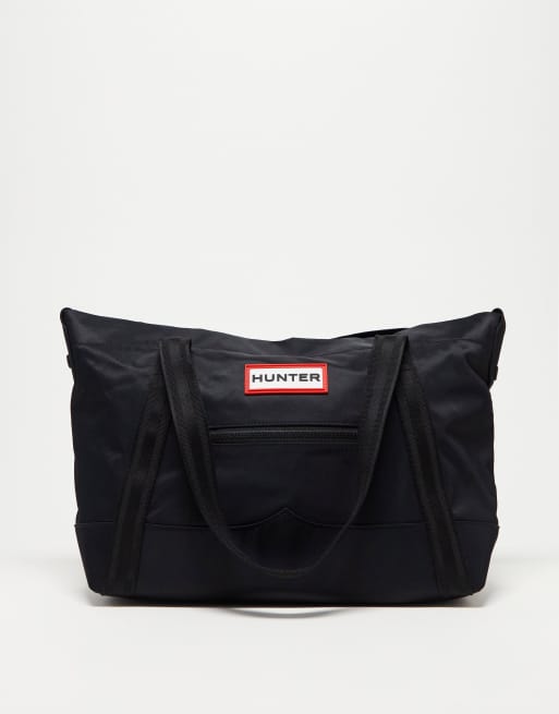 Hunter – Mittelgroße Nylon-Tragetasche in Schwarz mit Clipverschluss oben