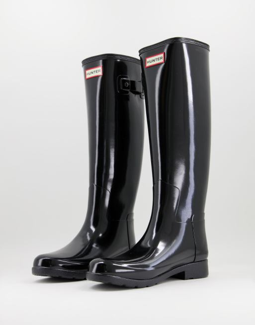 Hunter – Original Refined – Hohe Gummistiefel in Schwarz glänzend