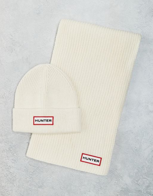 Hunter – Unisex-Set aus Strickmütze und Schal in Antikweiß in einer Box