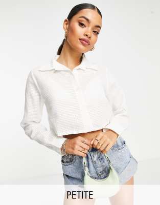 I Saw It First Petite – Kurz geschnittene, strukturierte Hemdbluse in Weiß