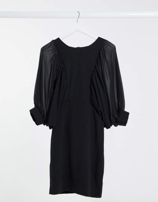 I Saw It First – Schwarzes Bodycon-Kleid aus Chiffon mit voluminösen Puffärmeln
