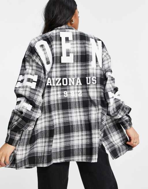 I Saw It First – Schwarzweiß kariertes Oversize-Hemd mit Motiv-Detail