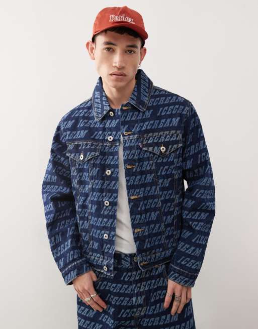 ICECREAM – Trucker-Jeansjacke in mittelblauer Waschung mit Monogramm-Muster, Kombiteil