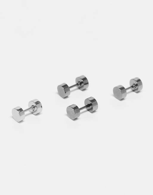 Icon Brand – Ohrstecker-Set in Silber aus gebürstetem Edelstahl
