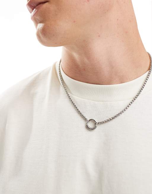 Icon Brand – Silberfarbene Halskette mit rundem Anhänger