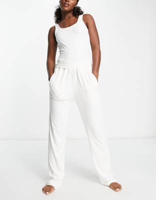 Il Sarto – Geripptes Lounge-Set aus Trägertop und weit geschnittener Hose in gebrochenem Weiß