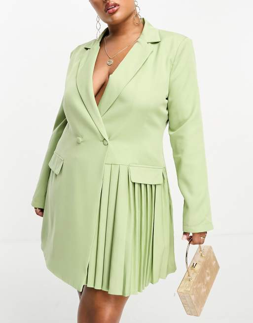 In The Style Plus – Blazer-Kleid in Salbeigrün mit plissiertem Saum