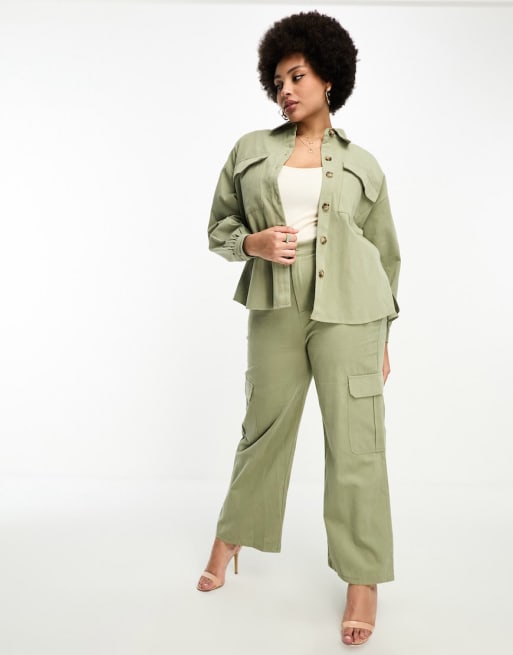 In The Style Plus x Gemma Atkinson – Set aus Utility-Hemdbluse und Hose in Khaki