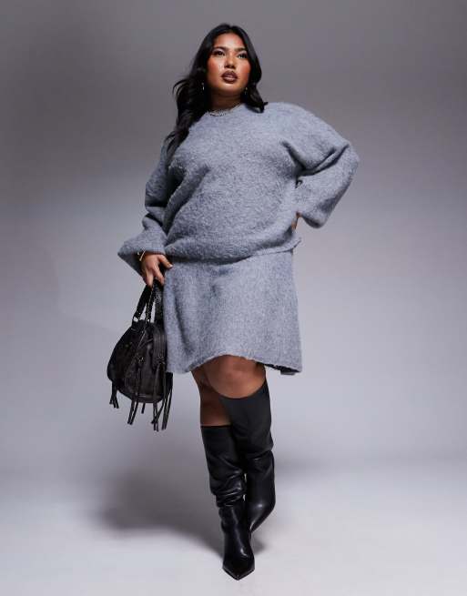 In The Style Plus x Natalya Wright – Flauschiges, gestricktes Set in Anthrazit, aus Rock und Pullover