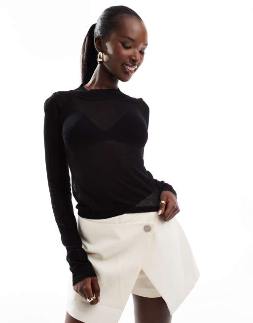 In The Style – Durchscheinender Feinstrick-Pullover in Schwarz