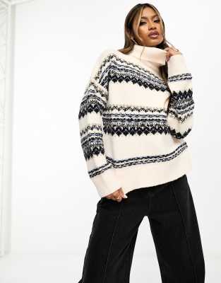 In The Style – Exklusiver, flauschiger Rollkragenpullover in Cremeweiß mit Norwegermuster