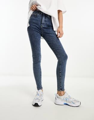 In The Style – Figurformende, eng geschnittene Jeans in Mittelblau mit hohem Bund