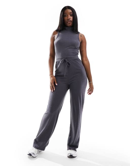 In The Style – Gerippter, hochgeschlossener Jumpsuit in Anthrazit mit Kordelzug