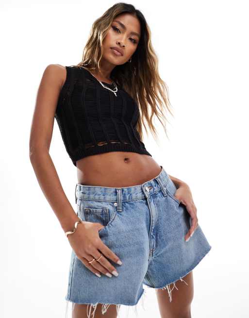 In The Style – Kurzes Strickoberteil in Schwarz mit Laufmaschenstruktur
