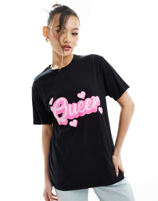 In The Style – Queer – T-Shirt in Schwarz mit Slogan-Print