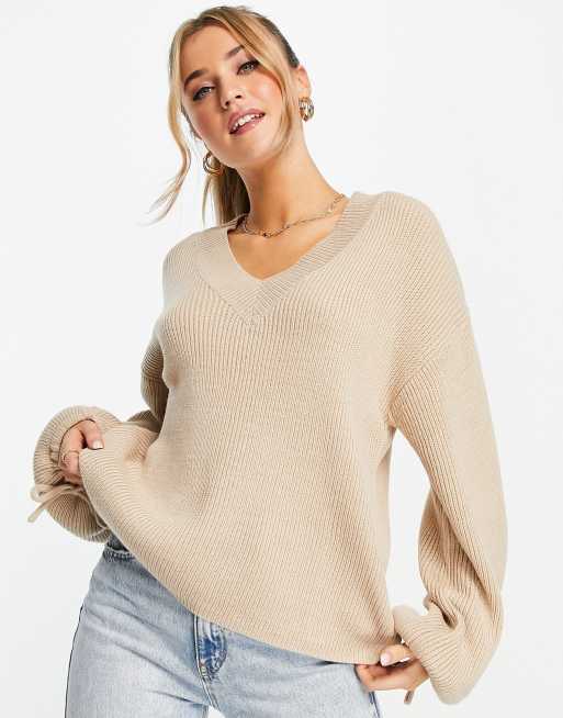 In The Style x Billie Faiers – Oversize-Strickpullover mit Ballonärmeln in Stein