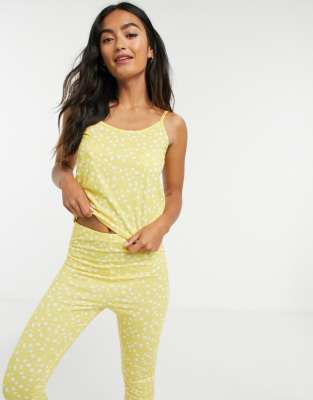 In The Style x Jac Jossa – Nachtwäscheset mit Camisole und Hose in Gelb-Bunt, durchgehend gepunktet