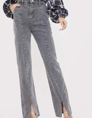 In The Style x Olivia Bowen – Hose in Grau mit hohem Bund, Schlitz vorne und geradem Bein