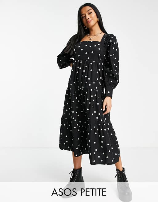 Influence Petite – Gestuftes Midikleid mit eckigem Ausschnitt aus gepunkteter Baumwollpopeline