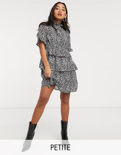 Influence Petite – Gestuftes Minikleid mit hohem Kragen und Blumenmuster
