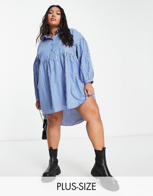 Influence Plus – Mini-Hemdkleid in Blau gestreift