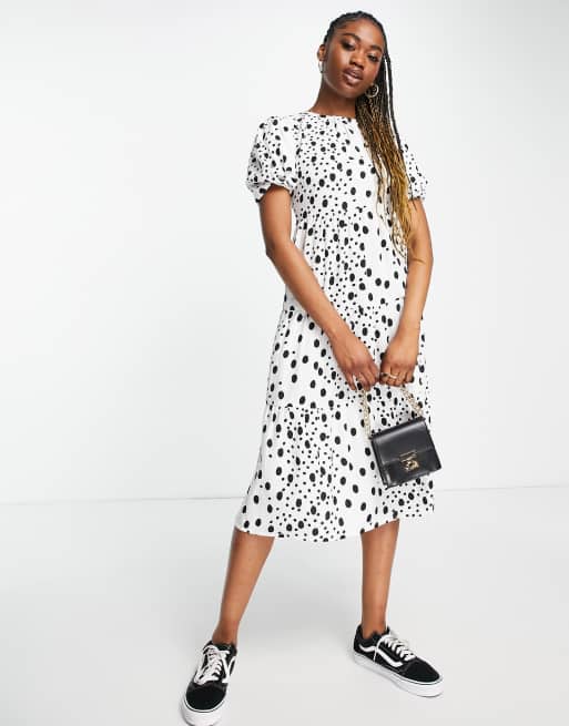 Influence – Midi-Hängerkleid in Weiß mit Punktemuster