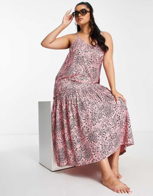 Influence Plus – Strand-Maxikleid mit Print in Rosa