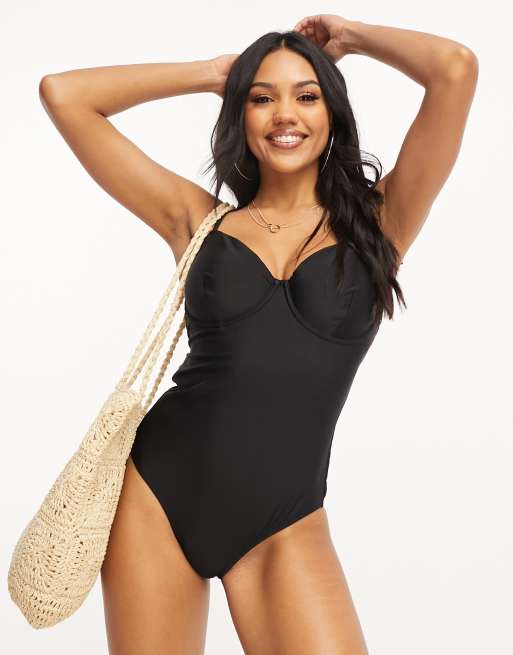 Ivory Rose – Fuller Bust – Badeanzug in Schwarz mit Bindeträgern an der Schulter und Bügeln