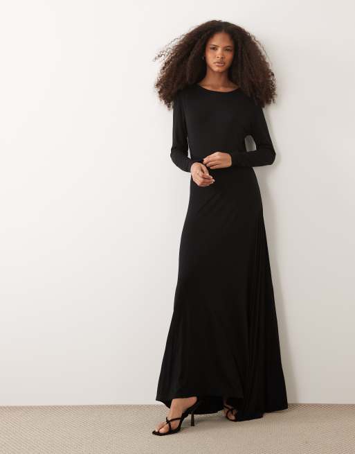IYAL – Fließendes A-Linien-Maxikleid aus Jersey in Schwarz mit U-Ausschnitt